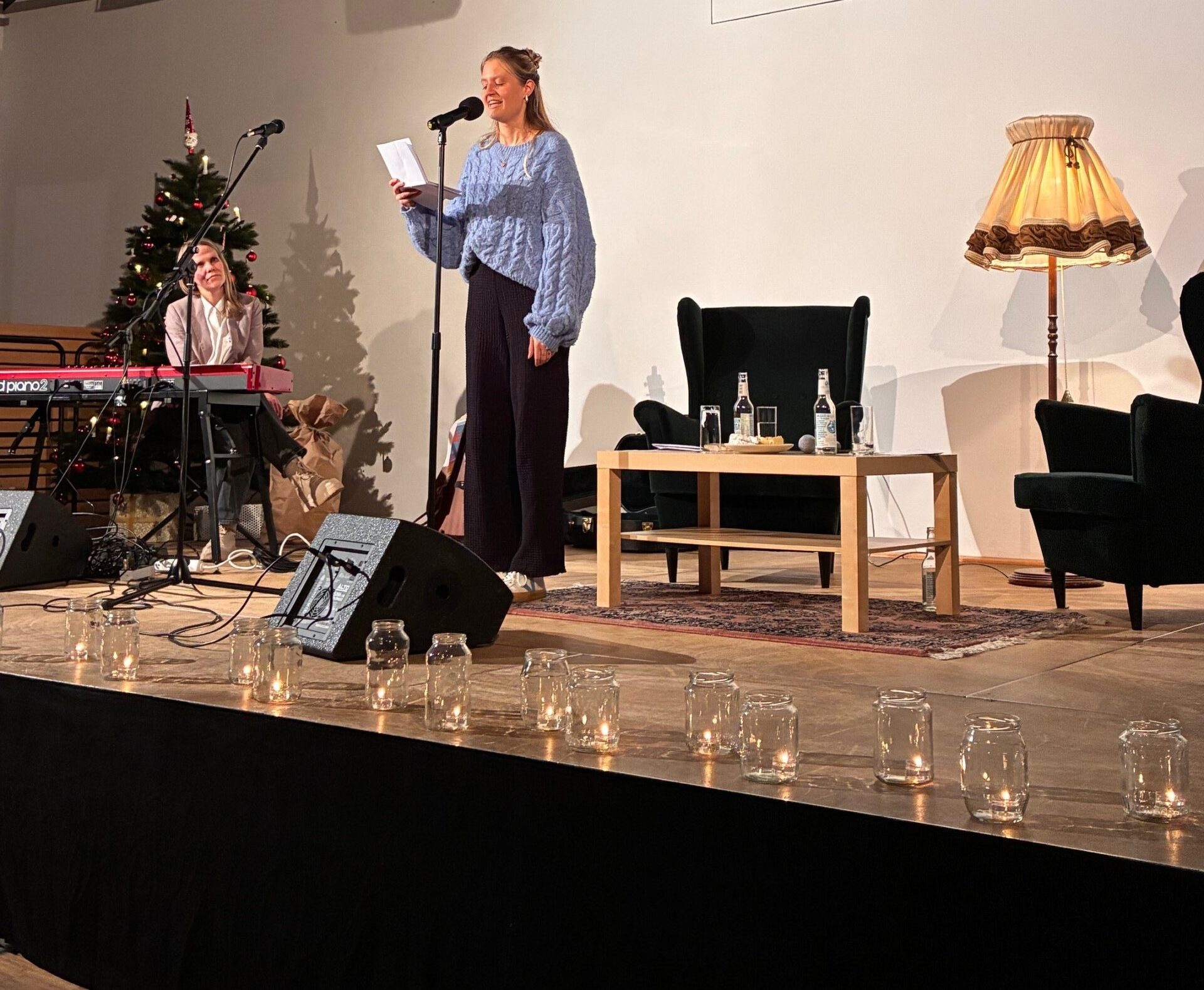 Am 5. Dezember verzauberten die Musikerin Katharina Stahl und die Poetry Slamerin und Autorin Leah Weigand das Publikum im Nachbarschaftszentrum mit ihrem Bühnenprogramm. Es gab eigene Songs von Katharina Stahl in Kombination mit Texten aus dem Buch von Leah Weigand, die eine bezaubernde Stimmung bei großem Kerzenschein aufkommen ließen.